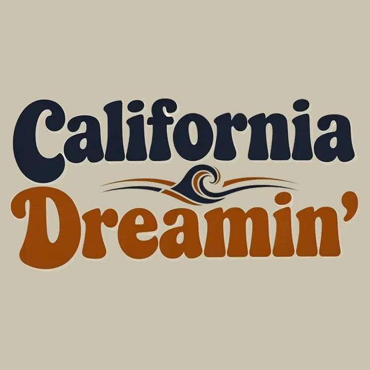 Ringer‑style retro surf club design in navy and burnt orange with small vintage wave—classic SoCal throwback printed on cream ringer tee.