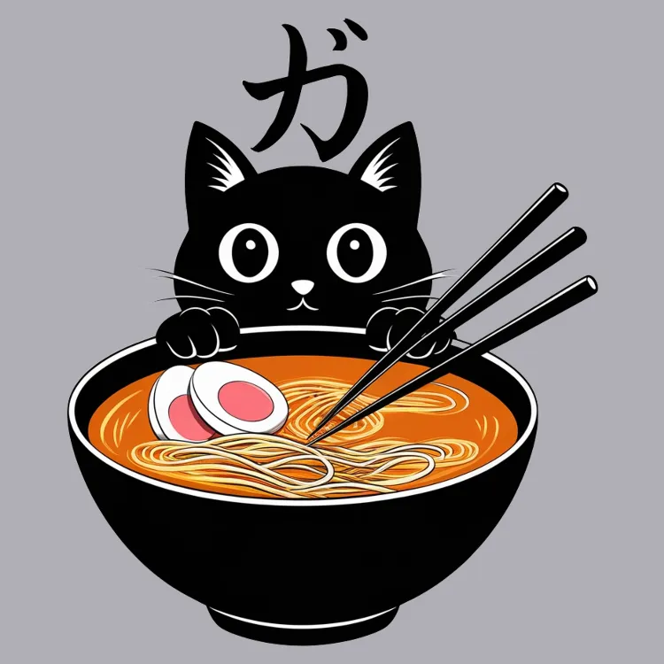 Dive into cuteness with this playful ramen-loving cat design. Perfect for foodies and cat lovers alike!
