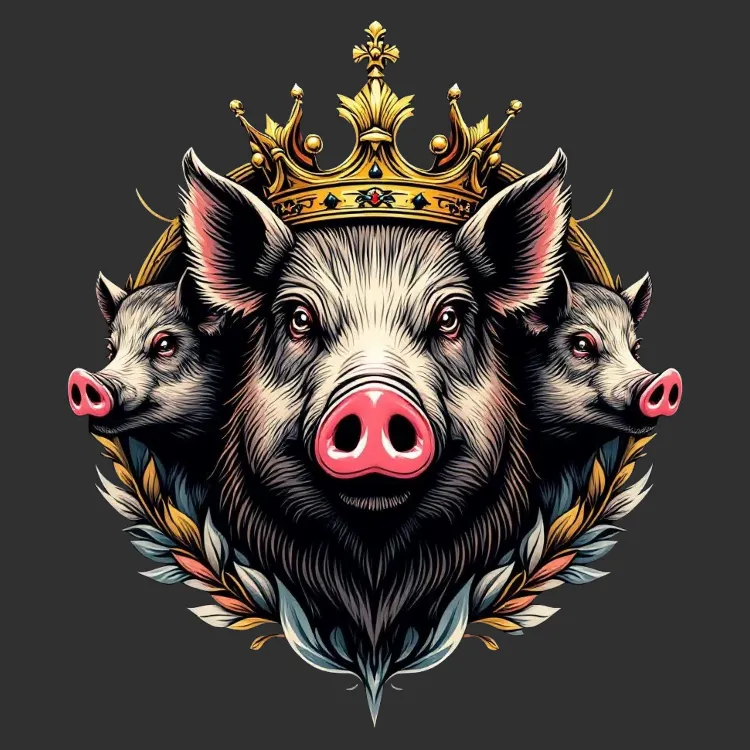 Show off your unique style with this crowned pig design, blending elegance and whimsy. Perfect for those who love standout art.