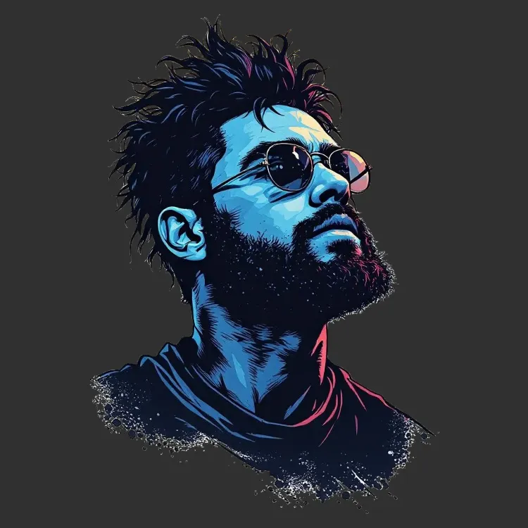 Embrace the modern art vibe with this bold, blue portrait design. Perfect for making a striking style statement.